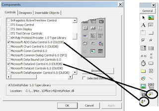 Kalau sukses, maka akan ada 2 icon baru di tollbox seperti pada gambar diatas. Selanjutnya adalah membuat koneksi dengan data base yang sudah kita buat sebelumnya di Access. Untuk cara membuat database di Access bisa baca di tutorial ini -> Tutorial Access